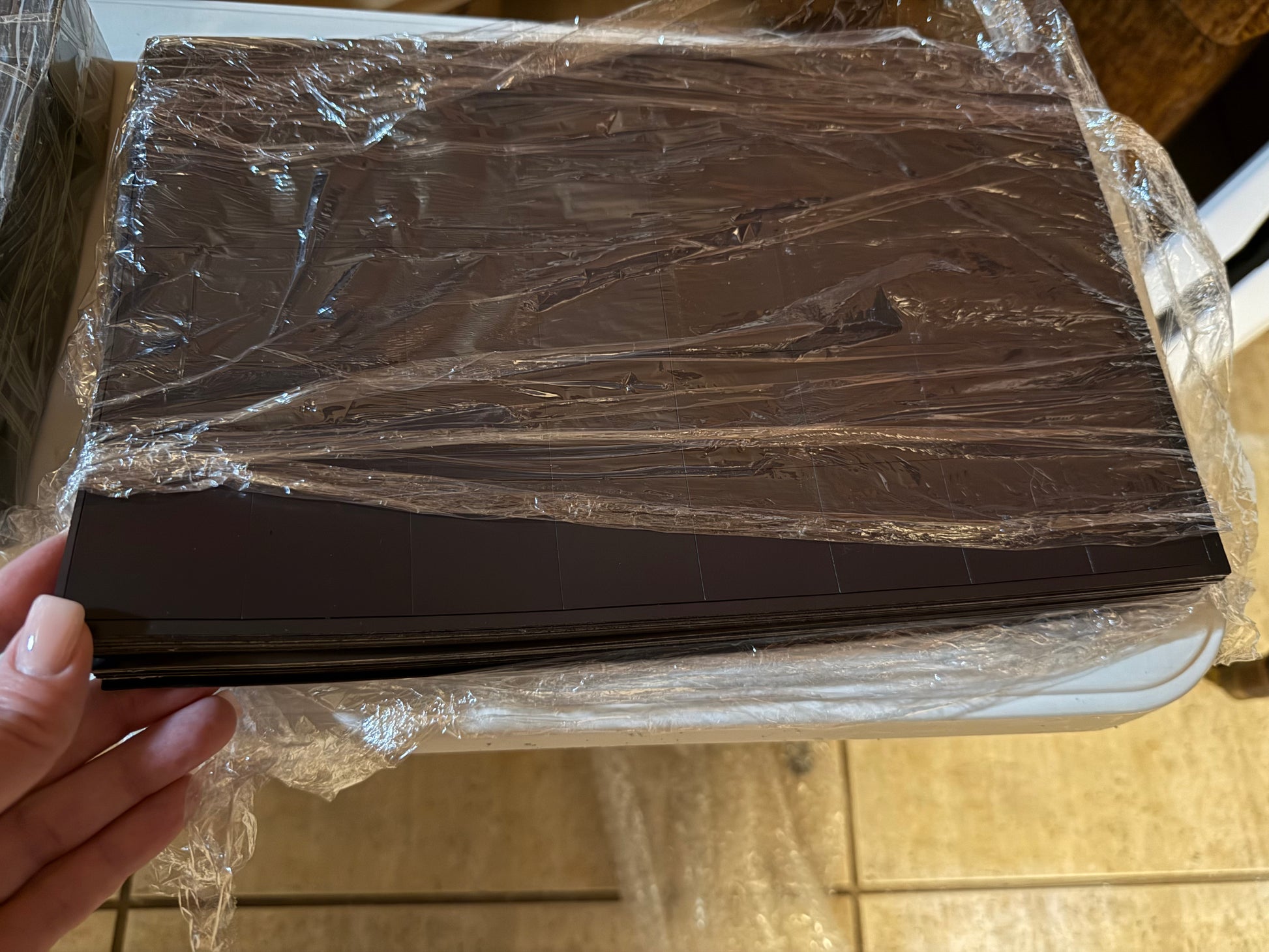 Includes cutter, and approximately 940 sets of supplies (metal plates, acrylic backing, mylar film, and magnets)
